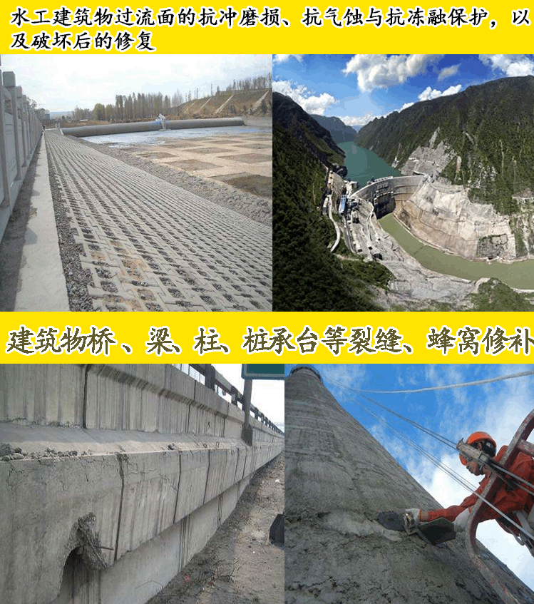2、水工建筑物過流面的抗沖磨損、抗氣蝕與抗凍融破壞后的修復與保護;